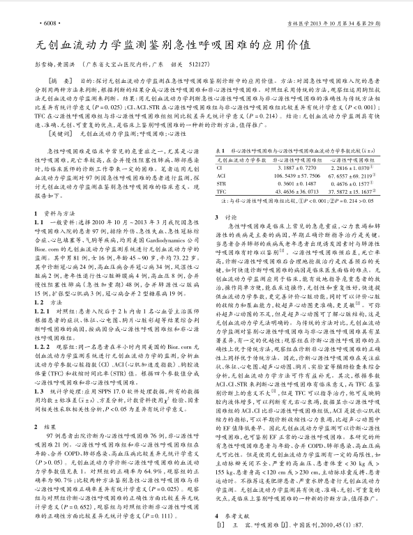 無創(chuàng)血流動力學(xué)監(jiān)測鑒別急性呼吸困難的應(yīng)用價(jià)值
