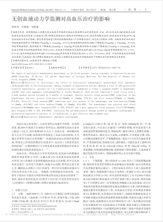 無創(chuàng)血液動力學(xué)監(jiān)測對高血壓治療的影響